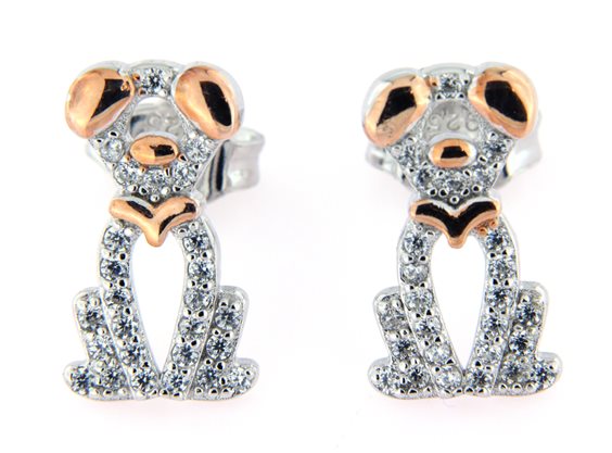 ORECCHINI ARGENTO 925 CON ZIRCONI A FORMA DI CAGNOLINO