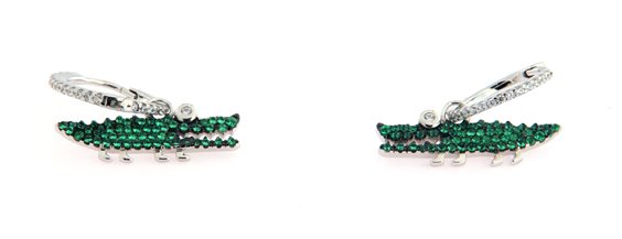 ORECCHINI ARGENTO 925 A FORMA DI COCCODRILLO CON ZIRCONI VERDI