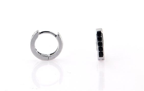 orecchini a cerchio in argento 925 rodiato con agate nere nella parte anteriore incassate a binario. Chiusura a scatto. Diametro 1 cm .