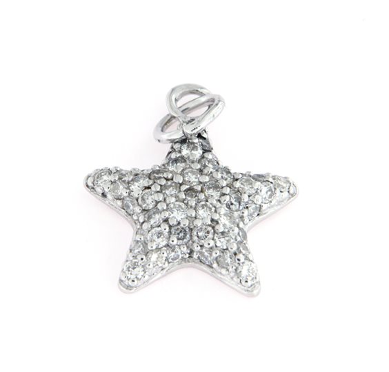 CIONDOLO ORO BIANCO 750 A FORMA DI STELLA CON DIAMANTI 0,34 CARATI PESO 1 GR