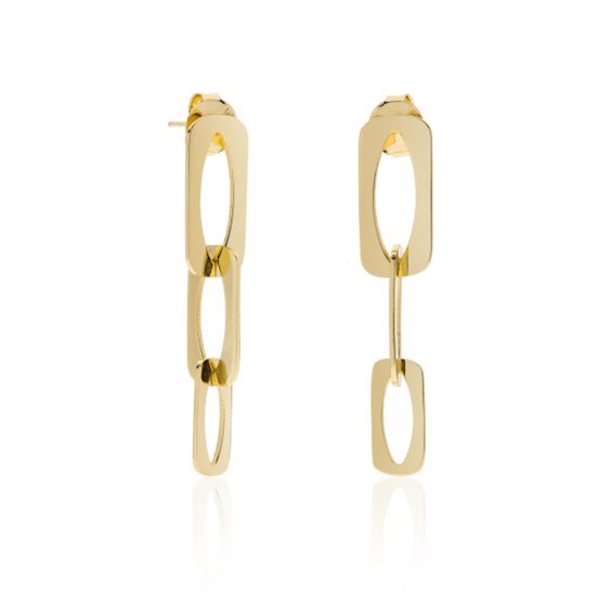 Orecchini pendenti in catena quadra piatta in bronzo dorato.