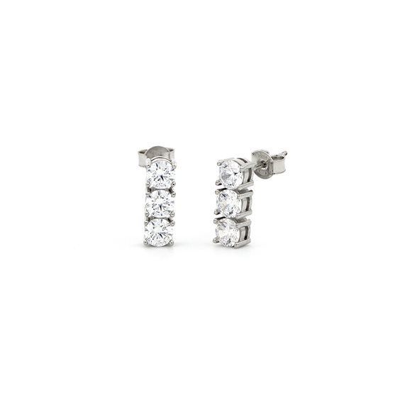 Orecchini trilogy in argento rodiato 925 con pietre zirconia cubica bianca di diametro 5 mm. Questi raffinati orecchini con trilogy di zirconi