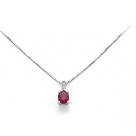 GIROCOLLO YUKIKO CON RUBINO E DIAMANTI Oro 375/1000 Nr 2 Diamanti naturali Pt.tot 1 Col.G Pur.SI Taglio Brillante Rotondo Nr 1 Rubino naturale Ovale mm 5x4 Ct 0,35