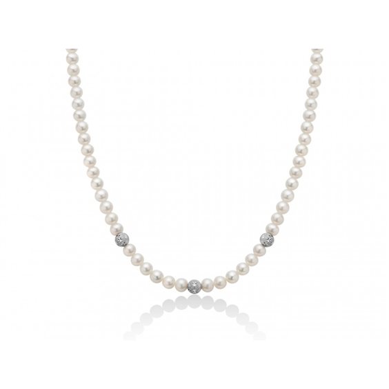 COLLANA ORO BIANCO CON PERLE GRANDEZZA 5,5/6